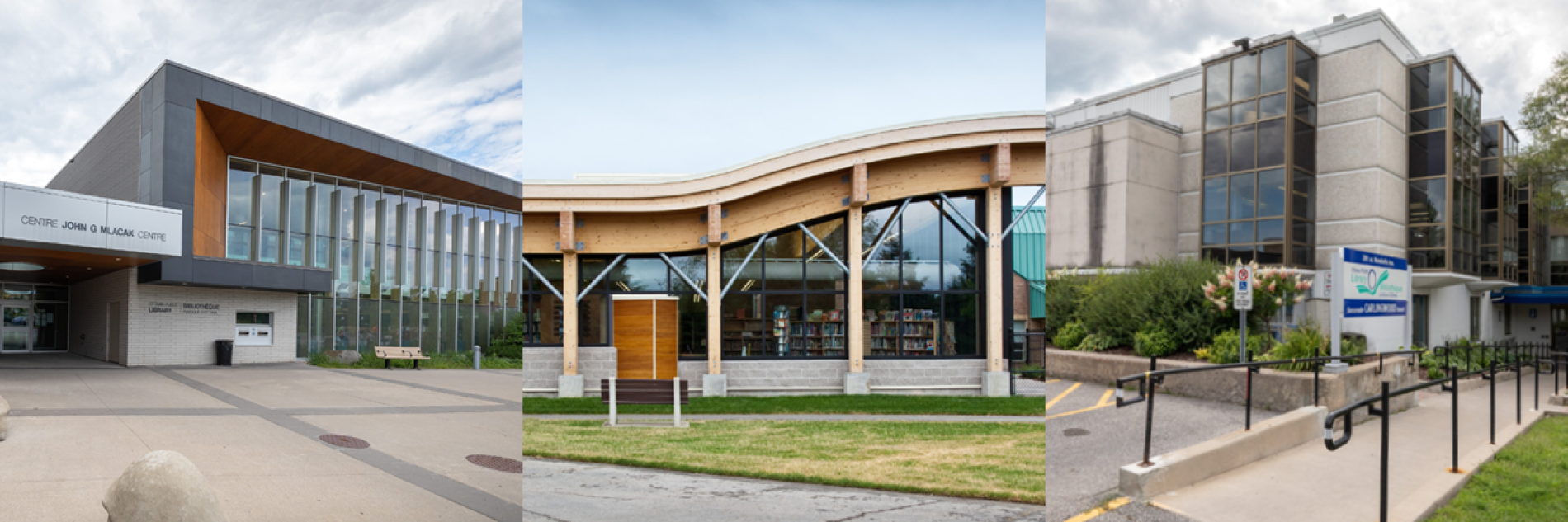 Image Vanier 310 Pères Blancs Ottawa ON K1L 7L5 Canada Sunday: ClosedMonday: 10:00 am - 8:30 pmTuesday: 10:00 am - 8:30 pmWednesday: 10:00 am - 8:30 pmThursday: 1:00 pm - 6:00 pmFriday: 1:00 pm - 6:00 pmSaturday: 10:00 am - 5:00 pm 1:1 TutorialBattery recyclingBook Drop - Open 24 hrs.Free ParkingWheelchair AccessibleAll-gender washroomsHeritage BuildingSecond-Hand Book SalesChromebooksScanning